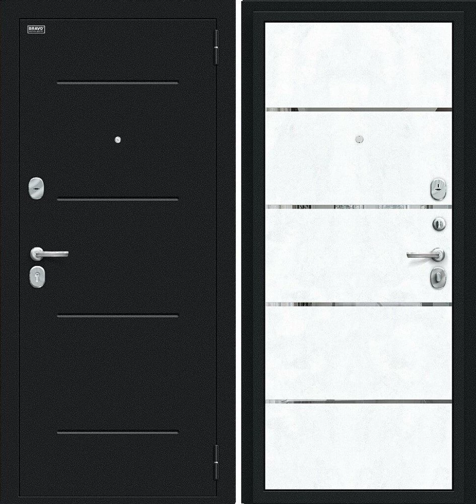 Надежная входная Дверь Браво Лайн Букле черное/Snow Art премиум класса по цене 30 873 руб. Большая толщина стали защитит от проникновения в ваш дом, квартиру или коттедж. Используется очень качественная фурнитура: замки, цилиндры, ручки, защелки. Покрытие и отделка двери изготовлено под внимательным контролем производителя. Дверь имеет долгий срок службы и гарантию.