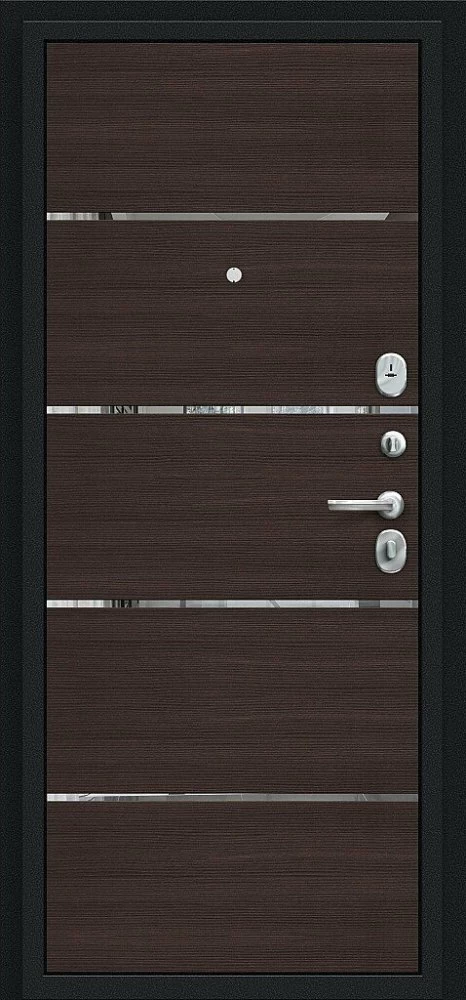 Надежная входная Дверь Браво Лайн Букле черное/Wenge Veralinga премиум класса по цене 30 873 руб. Большая толщина стали защитит от проникновения в ваш дом, квартиру или коттедж. Используется очень качественная фурнитура: замки, цилиндры, ручки, защелки. Покрытие и отделка двери изготовлено под внимательным контролем производителя. Дверь имеет долгий срок службы и гарантию.