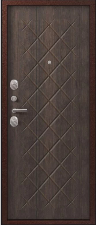 Надежная входная Дверь V-02 медь антик - венге премиум класса по цене 37 653 руб. Большая толщина стали защитит от проникновения в ваш дом, квартиру или коттедж. Используется очень качественная фурнитура: замки, цилиндры, ручки, защелки. Покрытие и отделка двери изготовлено под внимательным контролем производителя. Дверь имеет долгий срок службы и гарантию.